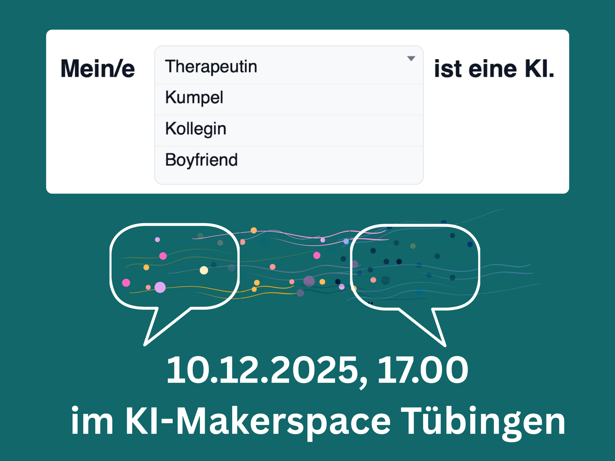 Am 10. Dezember 2025 um 17 Uhr lädt RHET AI im KI-Makerspace Tübingen zu einem besonderen Format ein: dem AI Companion Meetup. In einer kleinen, vertraulichen Runde sprechen wir über Erfahrungen, Chancen und Risiken im Umgang mit KI-Gefährten – wissenschaftlich informiert, journalistisch begleitet und offen für persönliche Perspektiven.